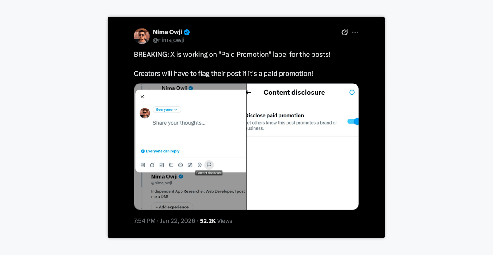 X is working on a new Paid Promotion label that would require creators to flag posts that include paid partnerships.